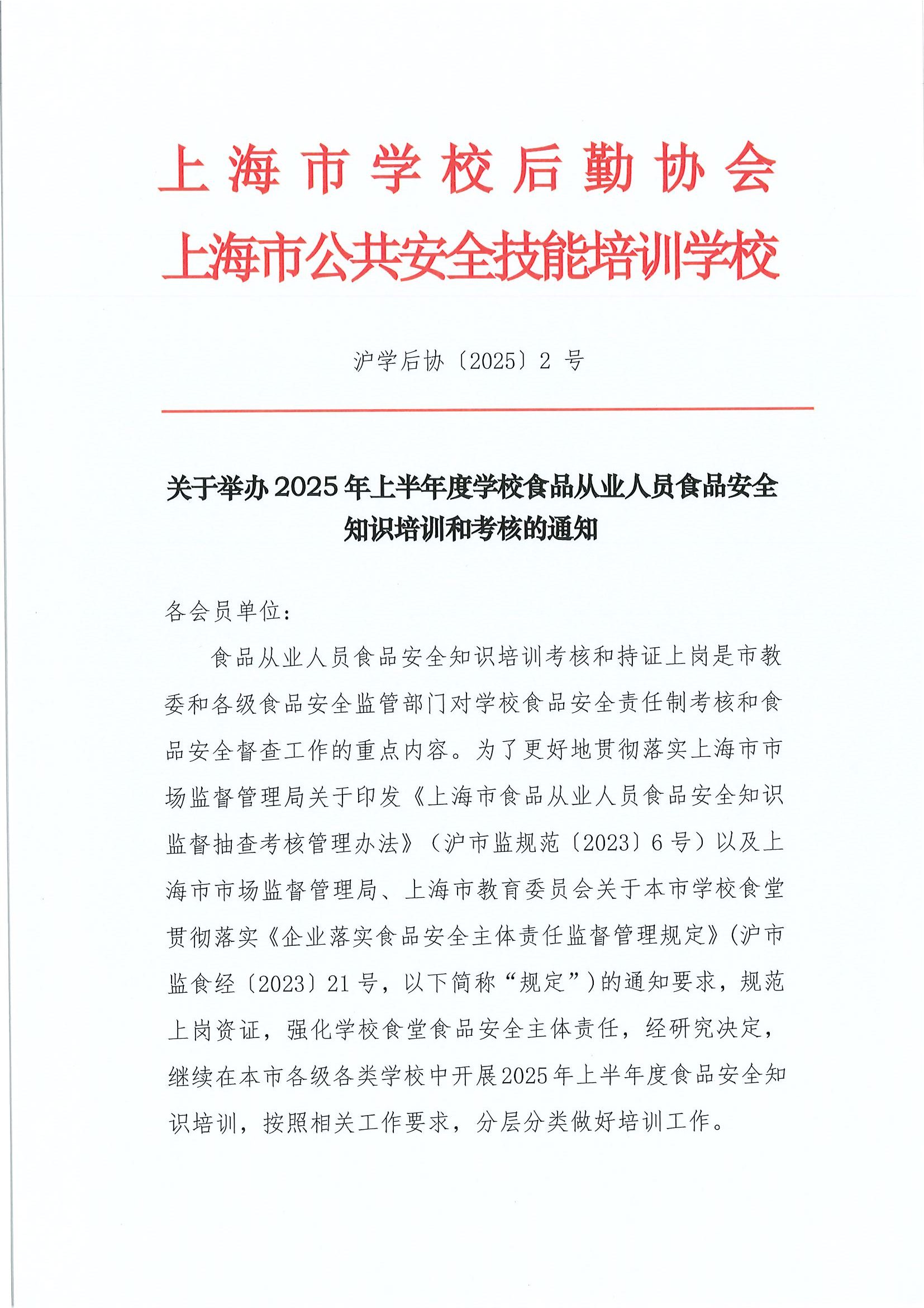 关于举办2025年上半年度学校食品从业人员食品安全知识培训和考核的通知