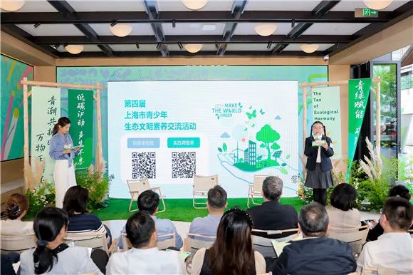 活动现场,第四届上海市青少年生态文明素养交流活动正式启动,三年以来,该活动为青少年搭建了学术创新与实践挑战的展示平台,吸引了全市各级各类学校的学生聚焦身边的环保议题,围绕“双碳”目标产出创新成果。活动主办方遴选了5个年度优秀项目,邀请5名专家学者与5个项目负责学生进行主题交流,以创新视角探讨生态环保的无限可能。