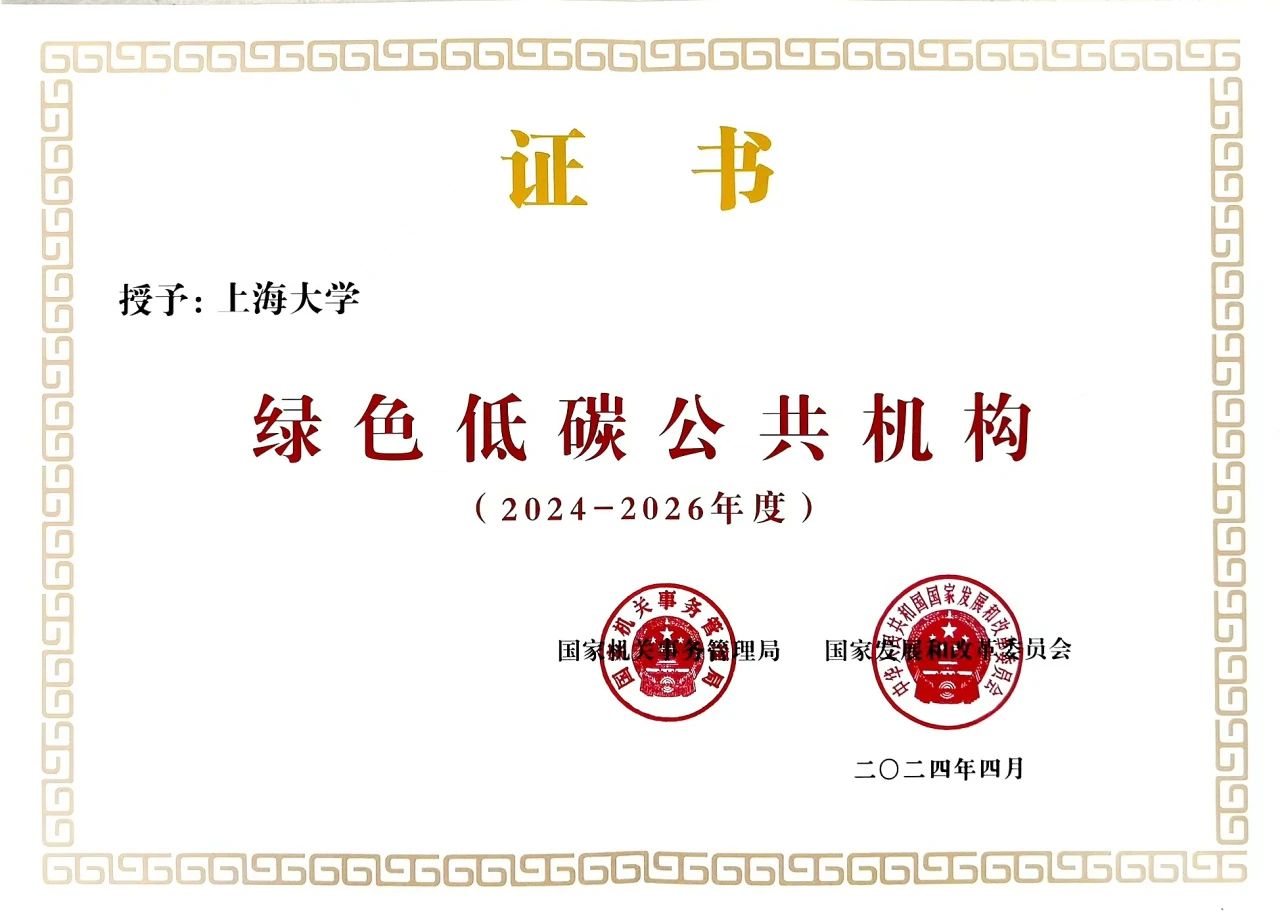 近日,国家机关事务管理局、国家发展和改革委员会联合发布首批国家级绿色低碳公共机构名单,上海大学获评为2024-2026年度绿色低碳公共机构,是上海市七个获评单位中唯一一所高校。