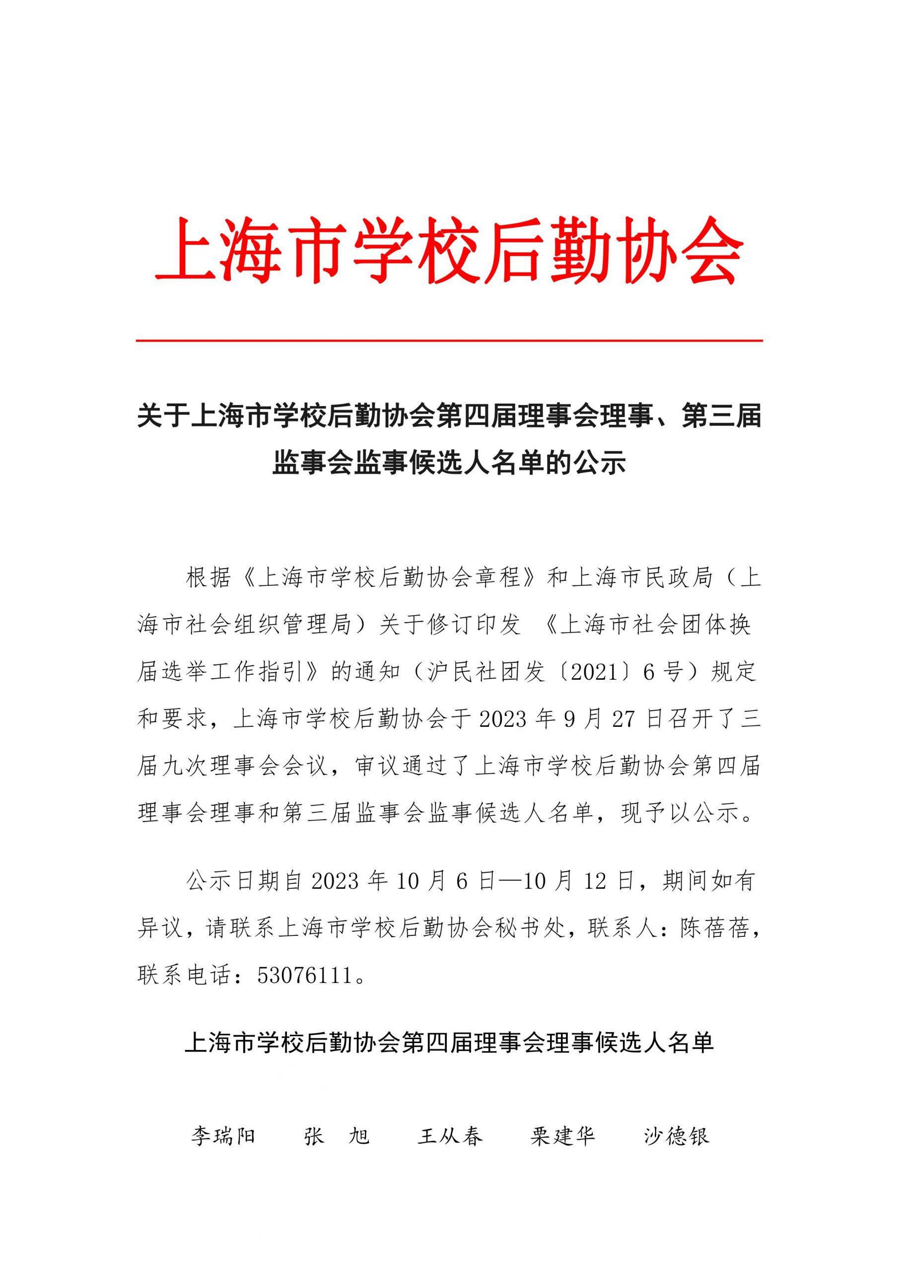 关于 第四届理事会理事、第三届监事会监事候选人名单的公示
