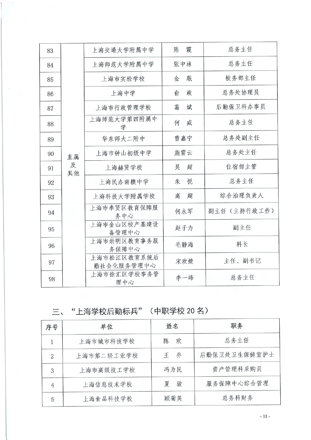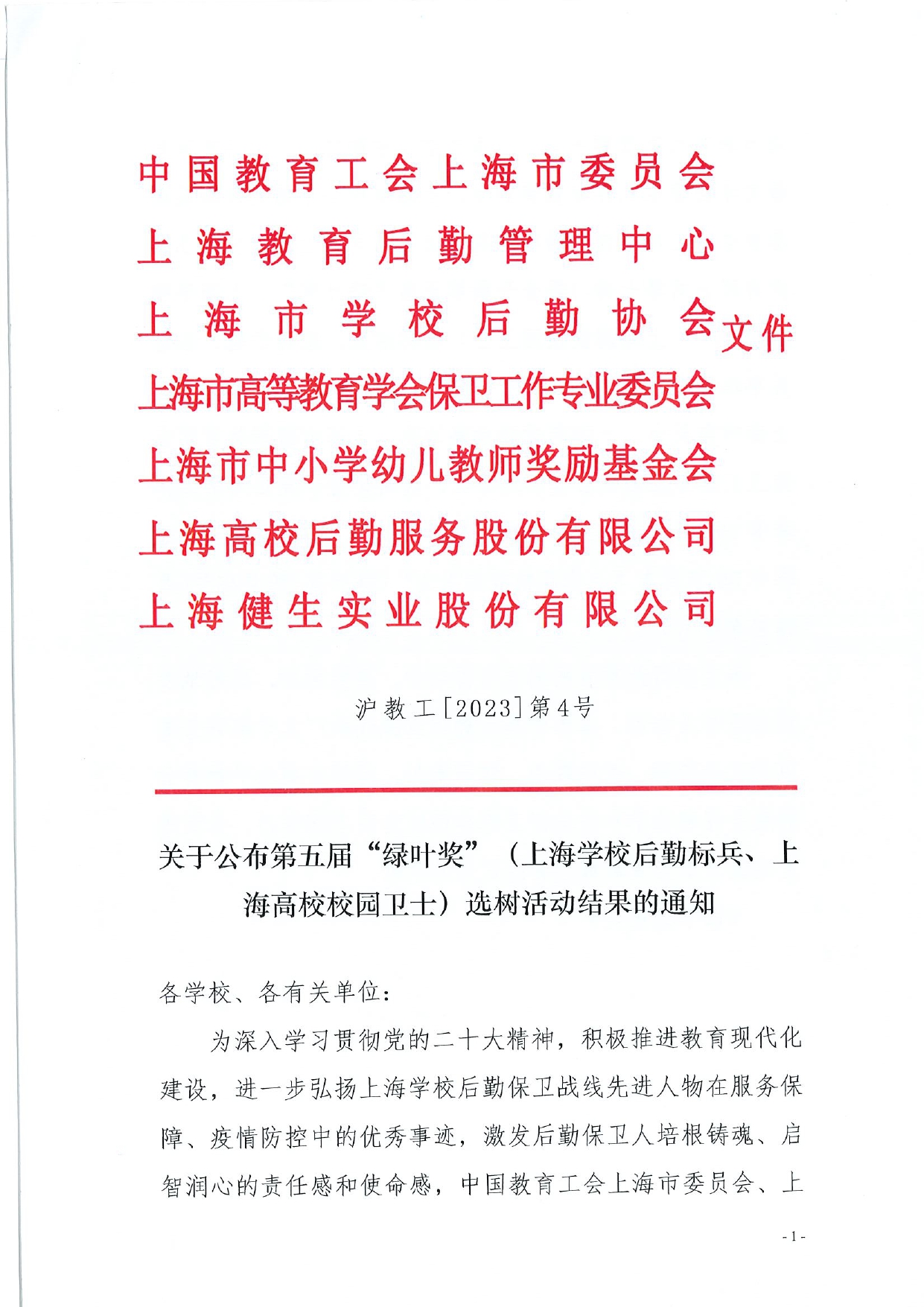 关于公布第五届“绿叶奖”(上海学校后勤标兵、上海高校校园卫士)选树活动结果的通知