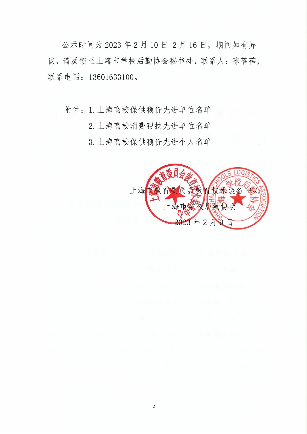 2022年度上海高校保供稳价和消费帮扶工作先进单位、先进个人名单公示
