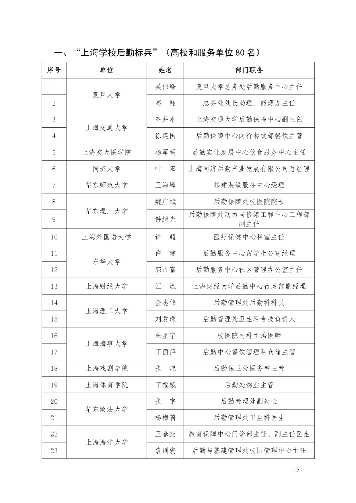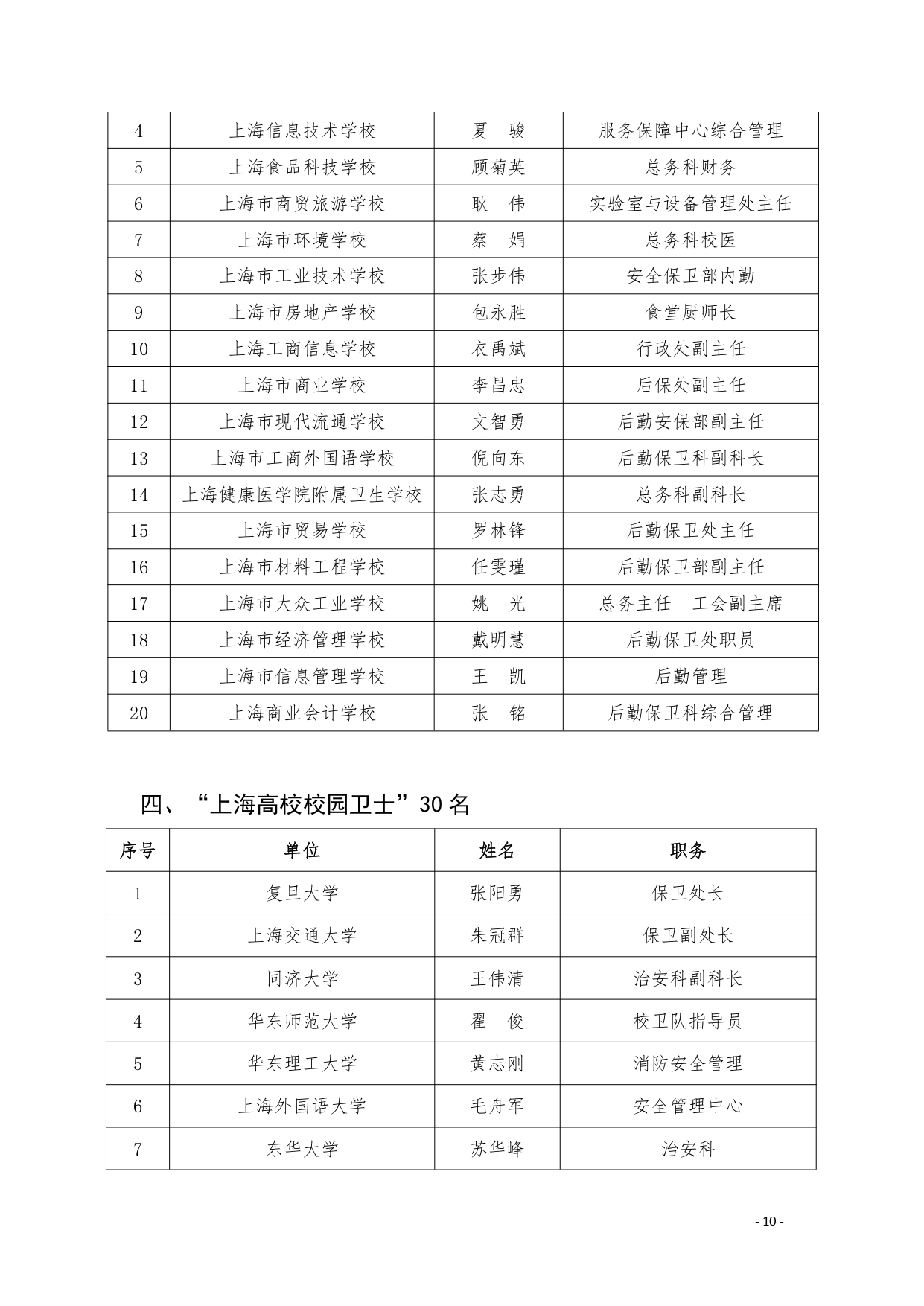 2022年第五届“上海学校后勤标兵”“上海高校校园卫士”(绿叶奖)名单公示