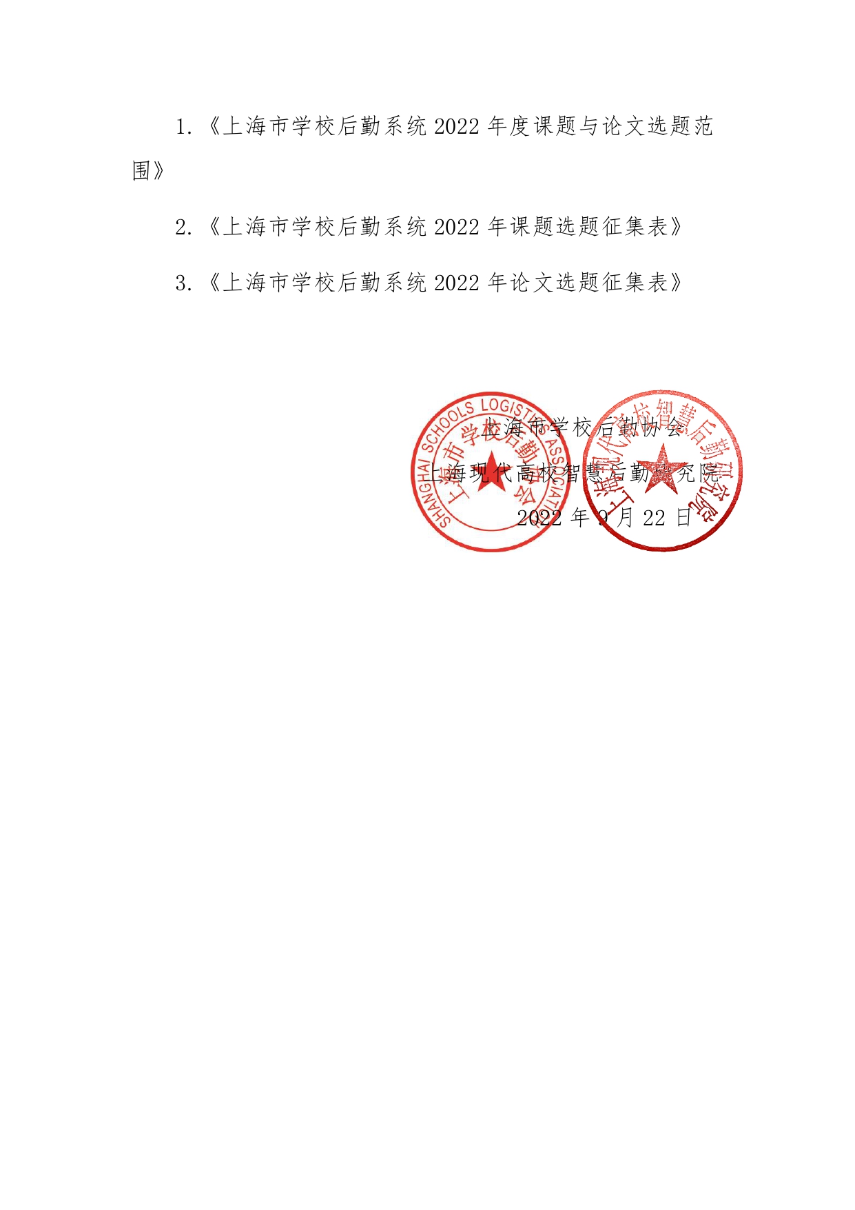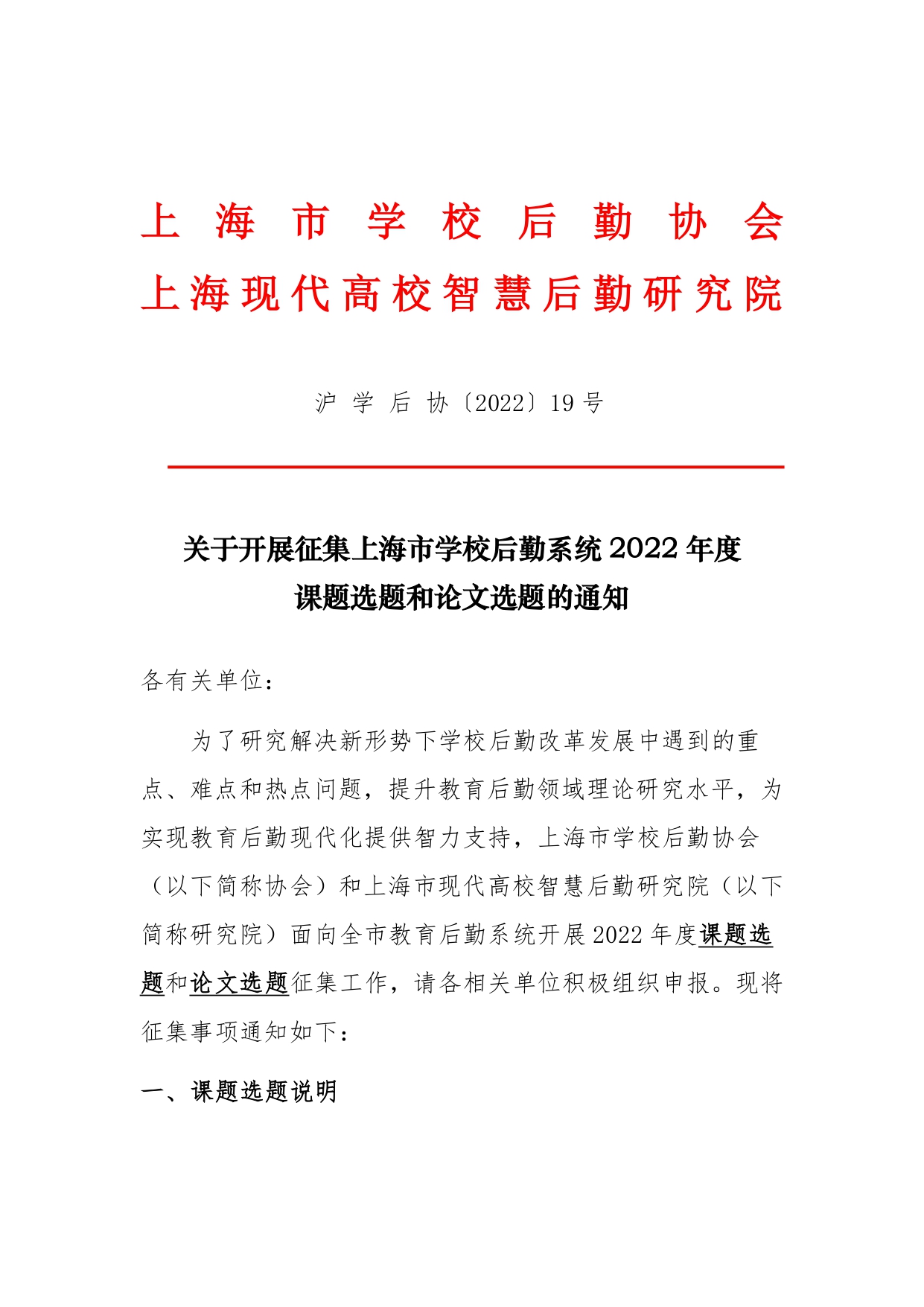 【19号】关于开展征集上海市学校后勤系统2022年度课题选题和论文选题的通知