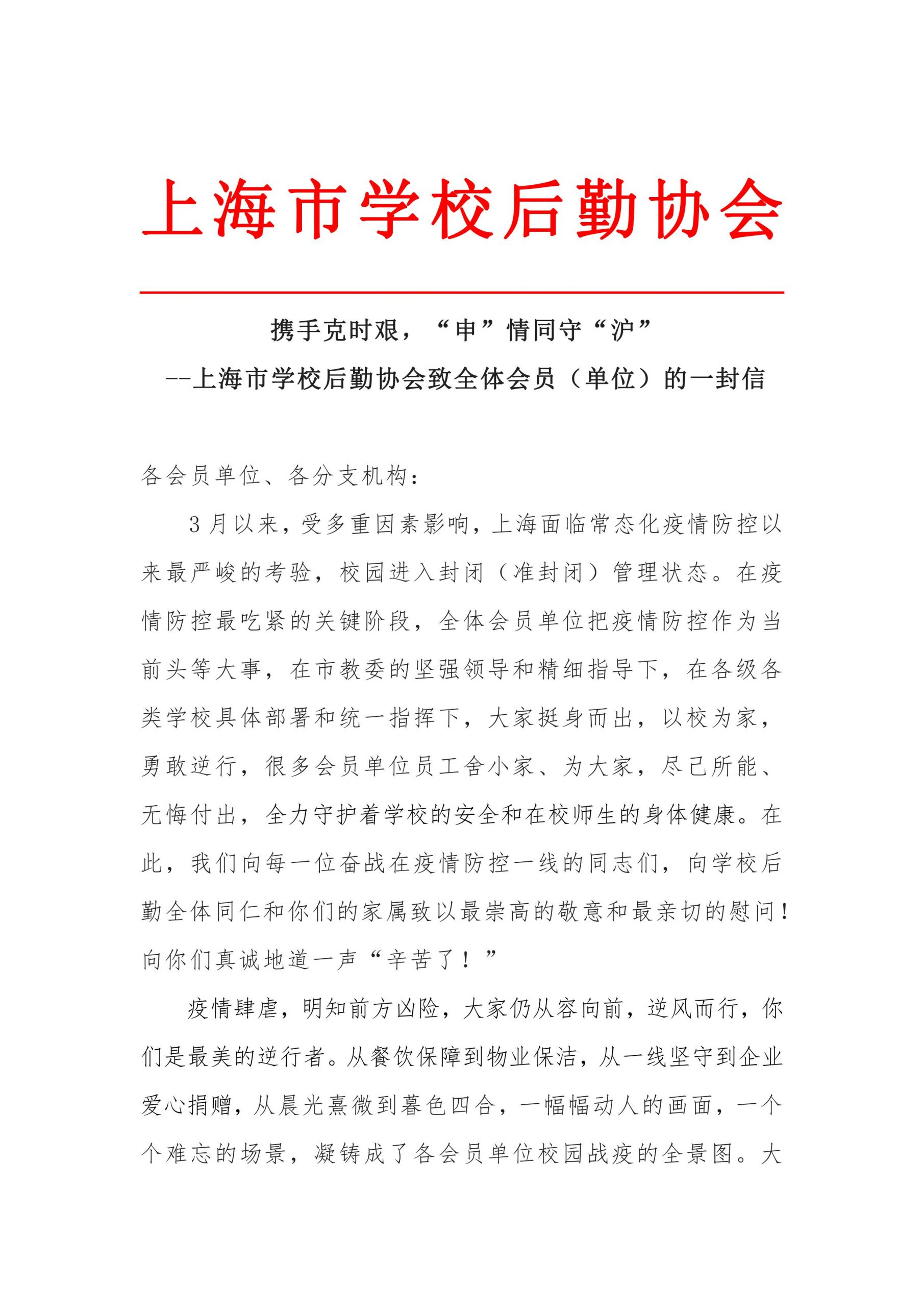 携手克时艰,“申”情同守“沪” -- 致全体会员(单位)的一封信
