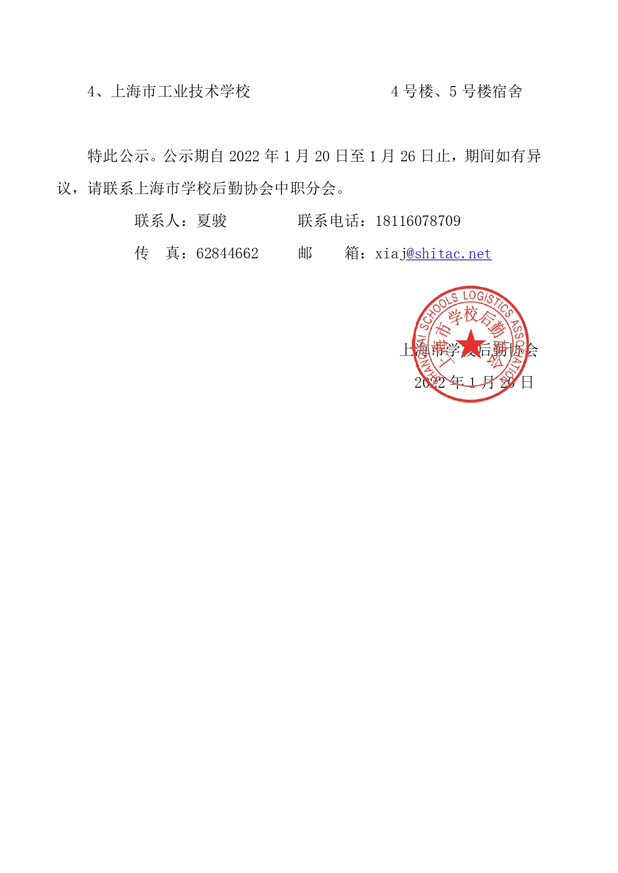 上海市中等职业学校 2021年“六T”实务现场管理示范(达标)学生宿舍名单公示