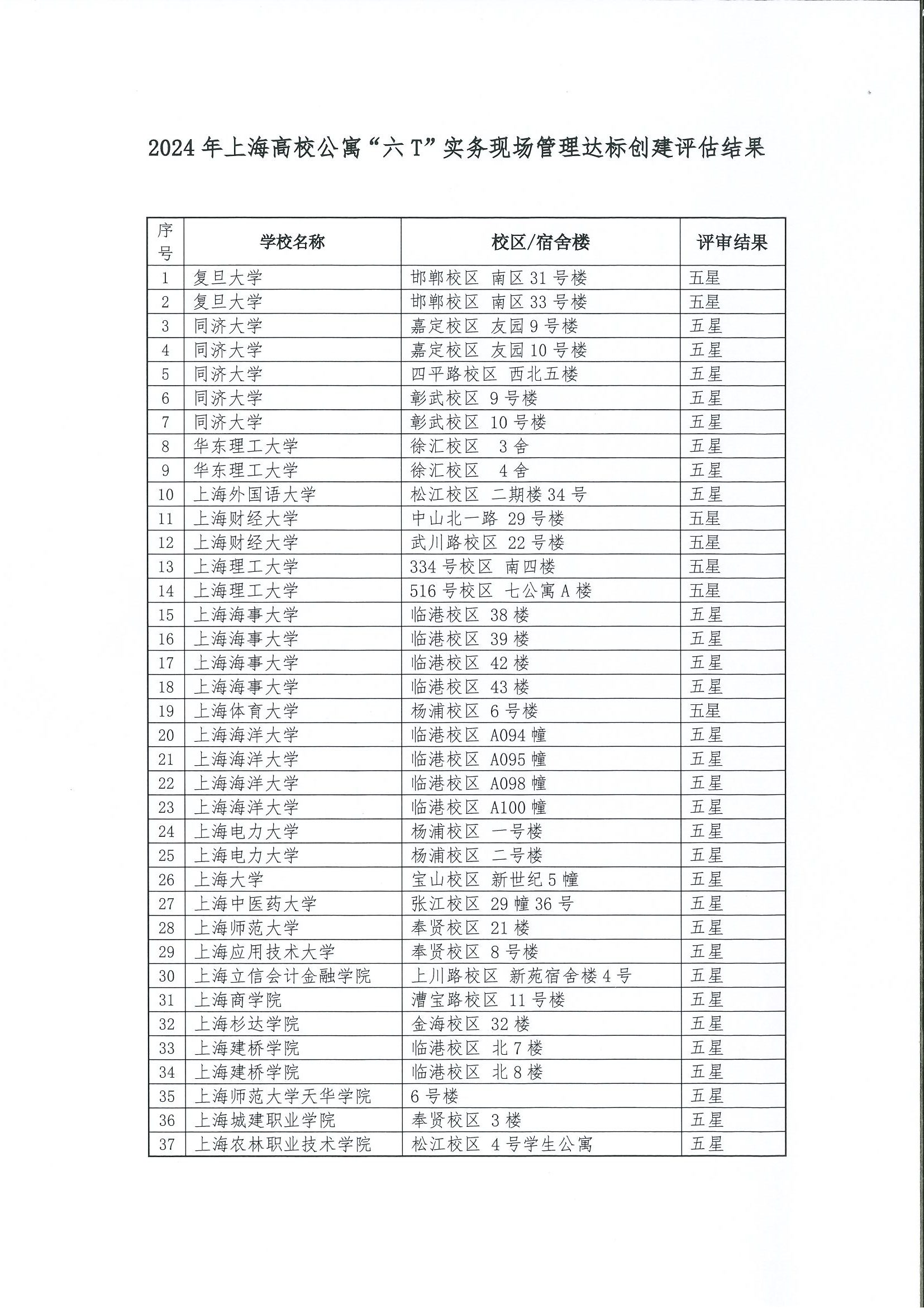 2024年上海高校学生公寓“六T”管理达标名单公示