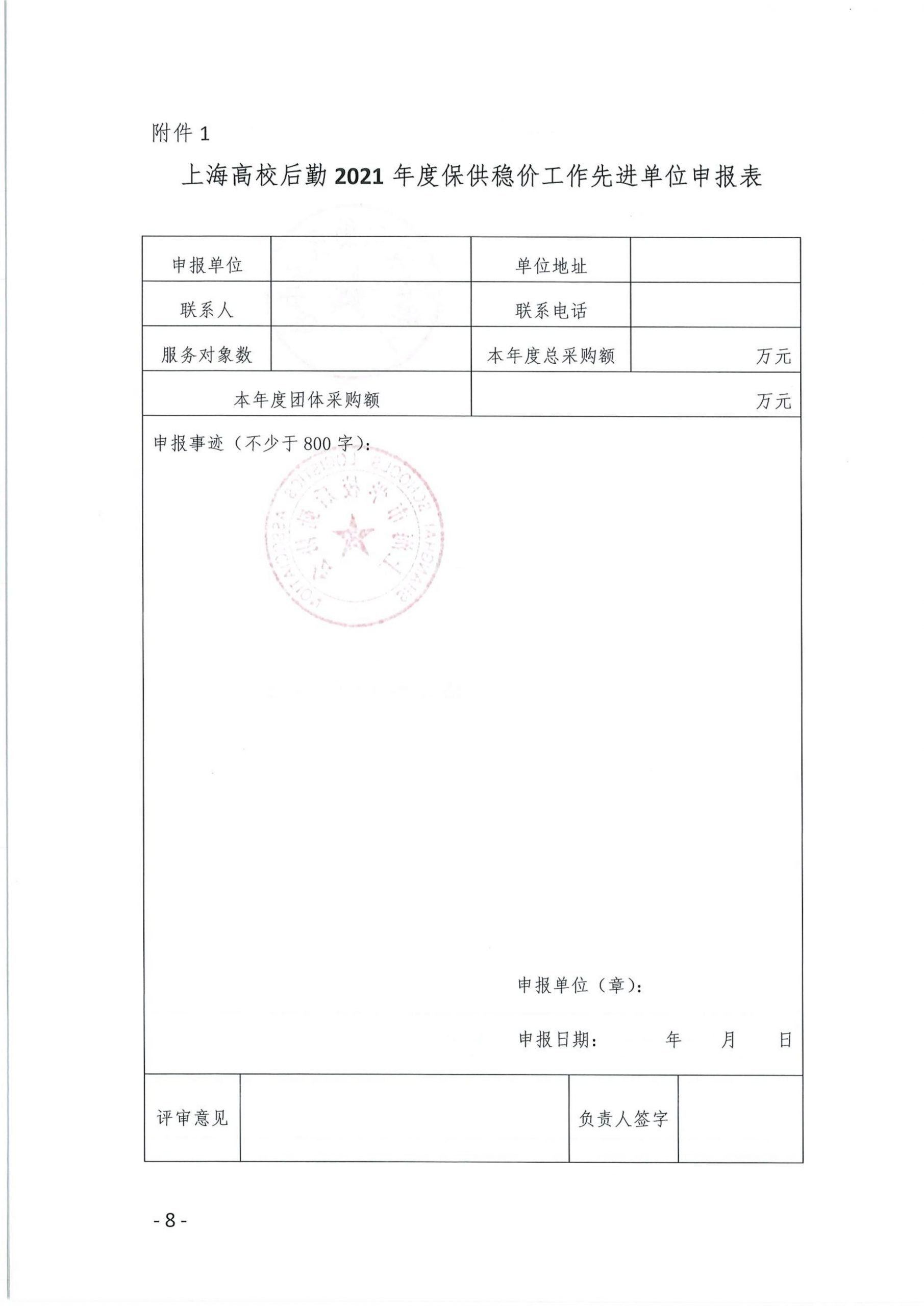 附件1 上海高校后勤2021年度保供稳价工作先进单位申报表