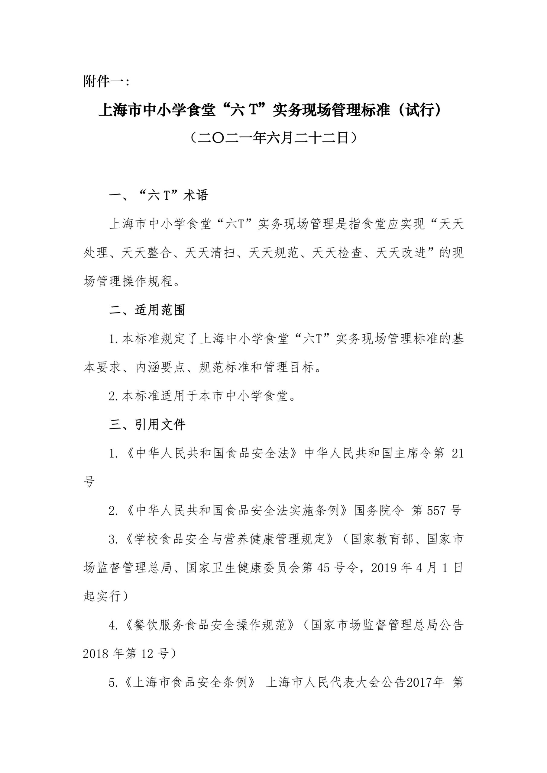 附件一:上海市中小学食堂“六T”实务现场管理标准