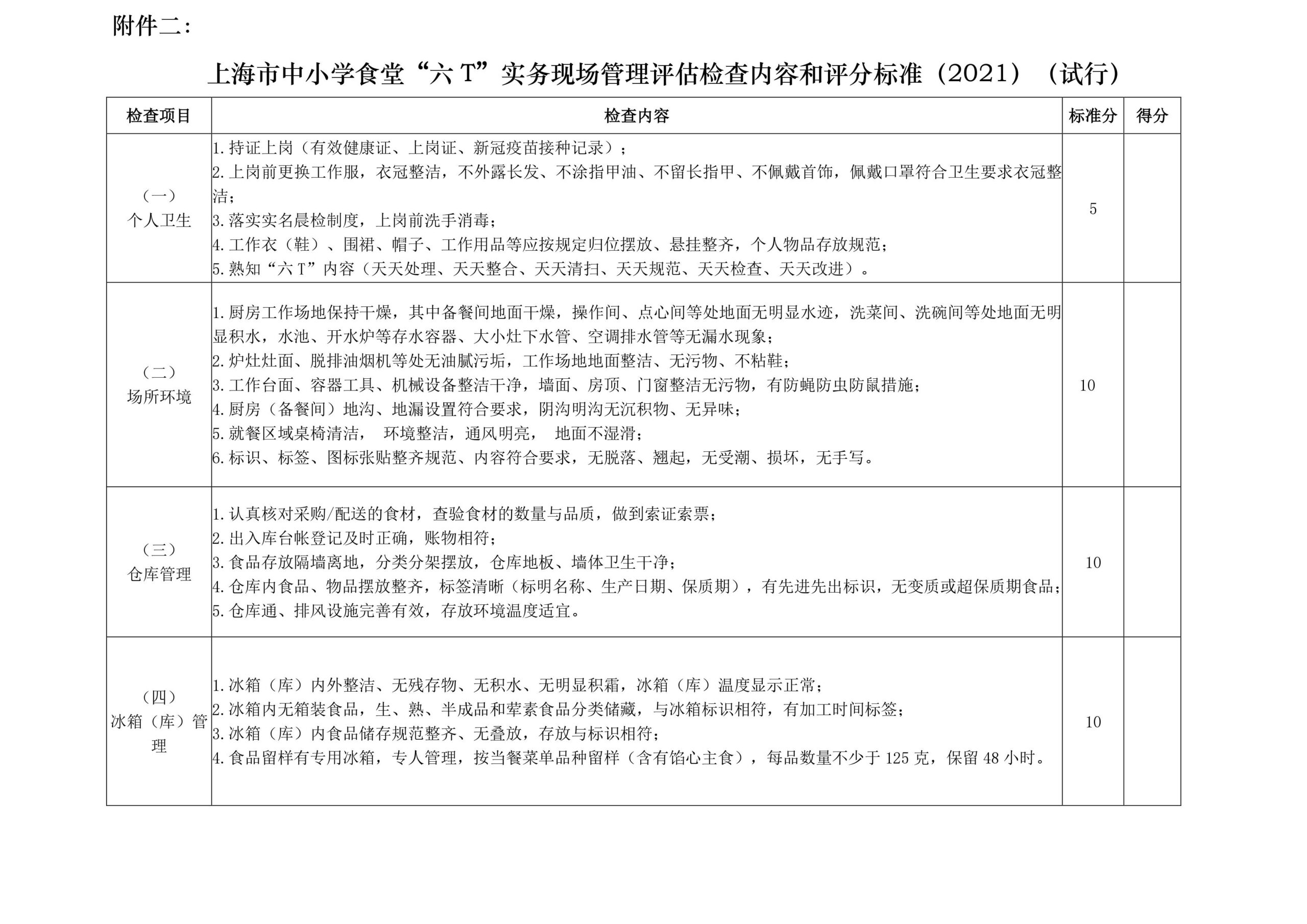 附件二:上海市中小学“六T”实务现场管理评估检查内容和评分标准2021