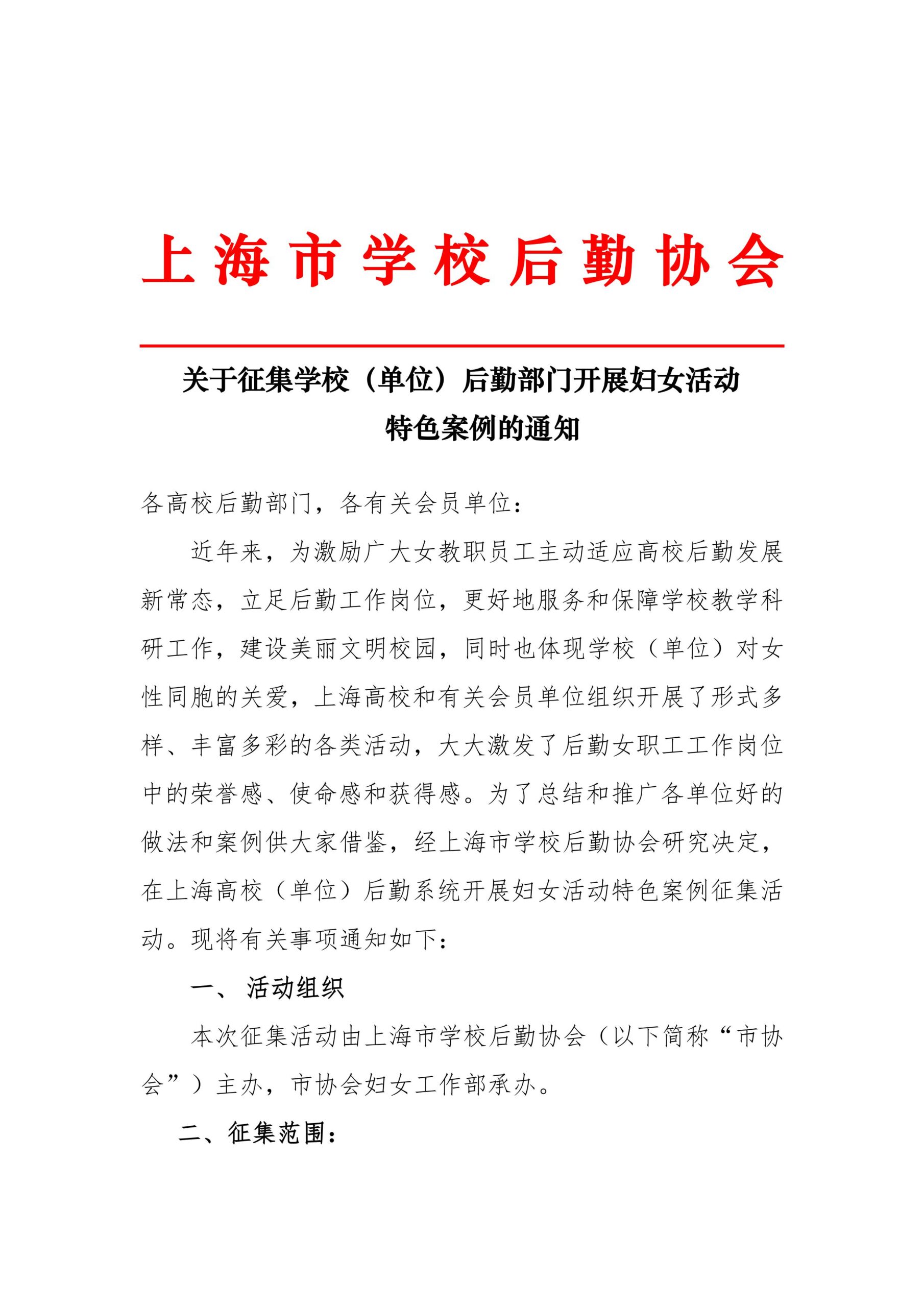 关于征集学校(单位)后勤部门开展妇女活动特色案例的通知-附件