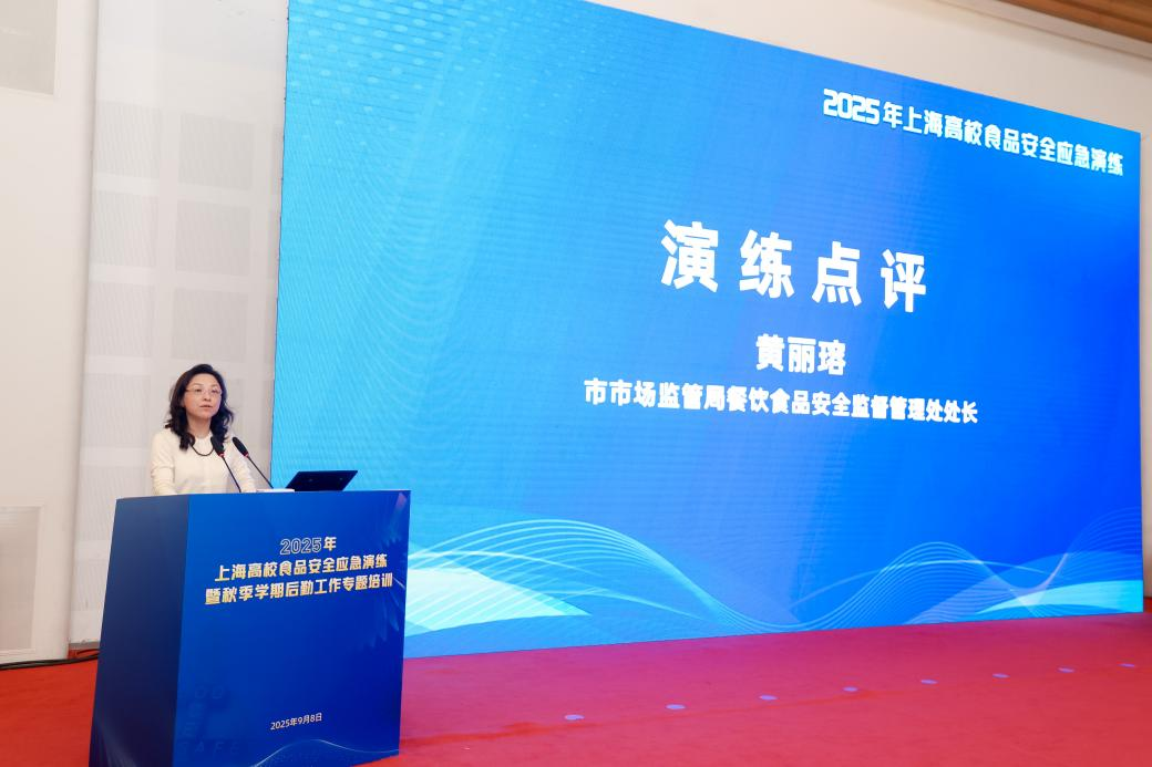 为进一步提升高校食品安全突发事件应急处置能力,提升高校后勤管理水平,推动高校后勤工作高质量发展,9月8日下午,2025年上海市高校食品安全突发事件应急处置演练暨秋季学期后勤工作专题培训在东华大学松江校区举行。本次演练由市教委、市市场监管局主办,市教委教育技术装备中心牵头承办。市教卫工作党委副书记顾红亮出席活动并讲话。东华大学副校长阎林平致欢迎词,市市场监管局餐饮食品安全监督管理处处长黄丽瑢现场点评。活动由市教委后保处处长贺小虎主持,全市各高校分管校领导、后勤部门负责人及相关单位代表共计200余人参加演练及培训。