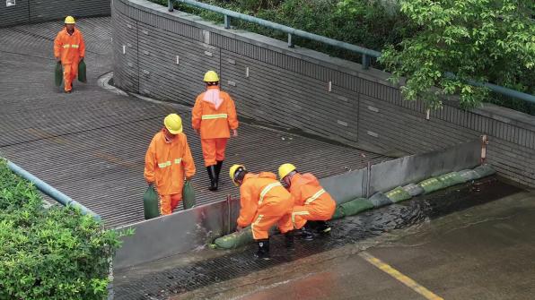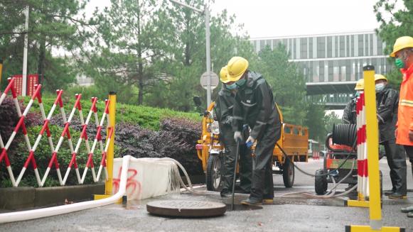 本次演练以面临2023年第四号台风侵袭为背景,学校为应对台风大风、强降雨等影响提前做好雨水管清淤疏通、校园树木防倒伏加固、防汛防台应急物资储备、防汛临时应急安置点、校园内河道预排水的应急准备工作。模拟了智慧校园应急云平台系统预警、校外河道和校内雨水管水位上涨、校内车库出入口周边溢水、校内部分建筑楼顶积水等问题,并针对设置相关演练科目。演练开始后,抢险队伍迅速集结,赶赴事发地点,按照防汛应急预案,有序规范快速开展应急救援,成功处置了各类险情。此次演练共计4支抢险队伍45名抢险队员参加,调集各类防汛车辆6辆,疏通机1台,潜水泵3台,防汛沙袋、安全帽、雨衣雨裤、挡水板等千余件防汛物资。演练中,应急抢险队伍业务熟练、精神饱满、配合密切,圆满完成了各项演练科目,达到了检验预案、磨合机制、锻炼队伍以及宣传教育的预期目的。