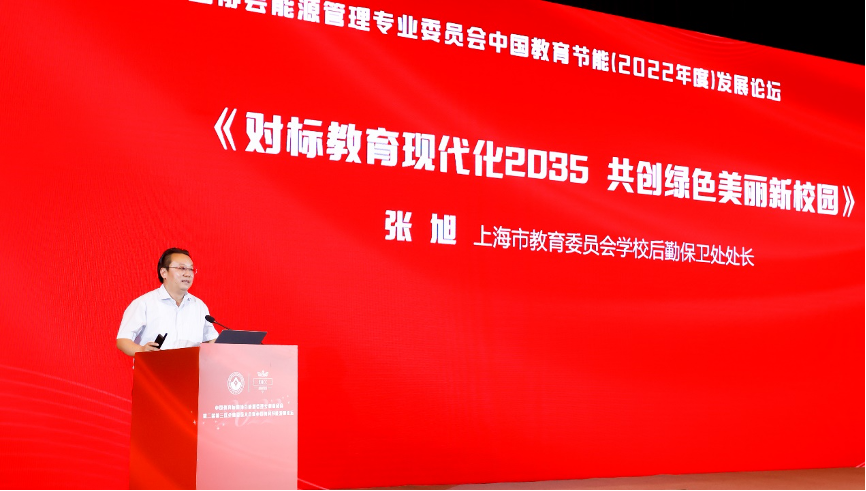 上海市教育委员会后勤保卫处处长、上海学校后勤协会常务副会长张旭受邀出席会议并作主题报告《对标教育现代化2035 共创绿色美丽新校园》。张旭处长介绍了上海高校绿色学校和节能管理的经验和特点,阐述了上海学校低碳生态文明新内涵,对标教育现代化2035,编制上海市平安美丽学校“十四五”规划,确立上海教育特色的美丽校园减碳节能目标和实施路径。通过“美丽校园”建设治理体系和能力现代化建设,贯彻绿色发展理念,践行绿色生活,推进绿色学校建设,提高青少年生态文明素养,坚定不移地走生态优先、绿色发展之路,推动教育高质量发展中促进全面绿色转型,共创共建共享绿色美丽新校园。